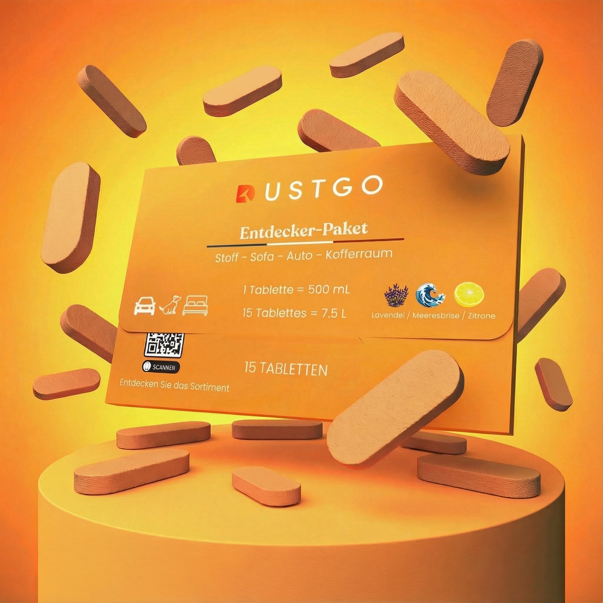 Wir empfehlen die Verwendung unserer speziell für Dustgo entwickelten Reinigungslösung, das Zitronen-Elixier. Allerdings ist sie auch mit anderen handelsüblichen Reinigungsmitteln kompatibel.